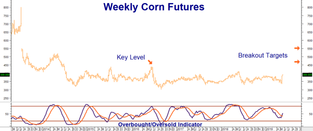 One thing is clear; corn and soybeans are still inexpensive, even with recent rallies off of last week’s punishing lows. RMB Group trading customers not already long may want to consider using options to construct low-risk bullish positions. Our long-term technical targets are $4.60 and $5.50 per bushel in corn and $11.00 per bushel in soybeans. Contact your personal broker for trade suggestions.
